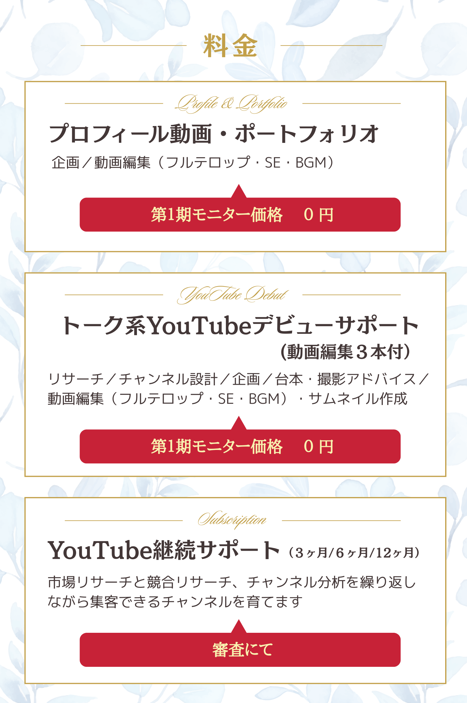 皆さまはモニターとして無料でサービスを受けていただくことができ、私は自分にできることをご提供することで実績を作ることができる、双方がハッピーになれる企画だと自負しております。